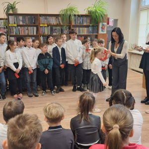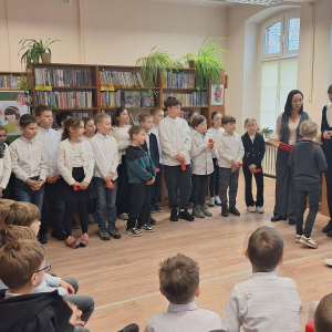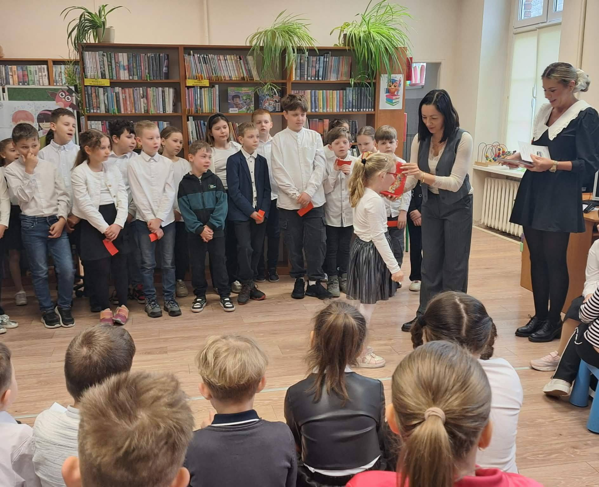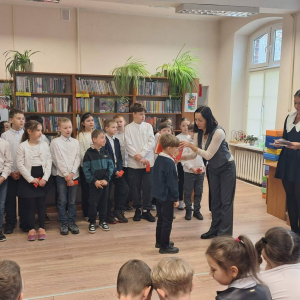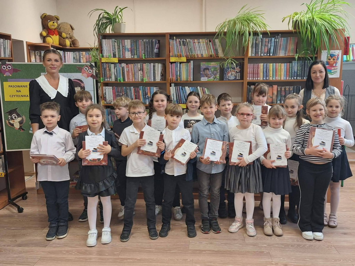 12 marca uczniowie klasy pierwszej wzięli udział w uroczystym pasowaniu na czytelnika biblioteki szkolnej. Z tej okazji uczniowie klasy trzeciej przygotowali krótkie przedstawienie oraz zagadki związane z poznanymi już literkami. Na pamiątkę tego wydarzenia pierwszoklasiści otrzymali dyplomy oraz książeczki z Narodowego Programu Rozwoju Czytelnictwa w ramach kampanii „Mała książka – wielki człowiek”.
