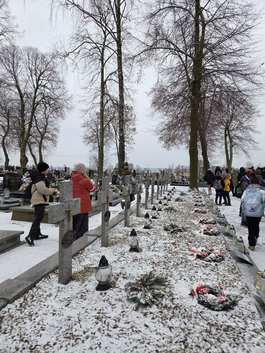 Z tej okazji został przygotowany piękny apel. Następnie wszyscy udaliśmy się na cmentarz, aby oddać hołd bohaterom.
