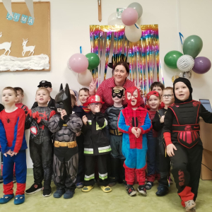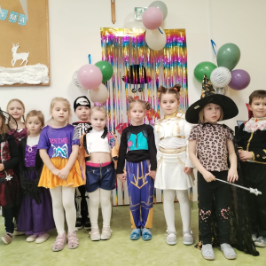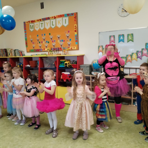 Dzieci zachwyciły kreatywnymi przebraniami i wspaniale bawiły się przy muzyce. Nie zabrakło tańców, zabaw integracyjnych i słodkiego poczęstunku.