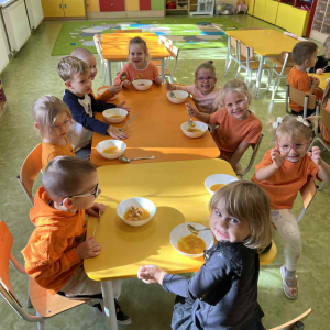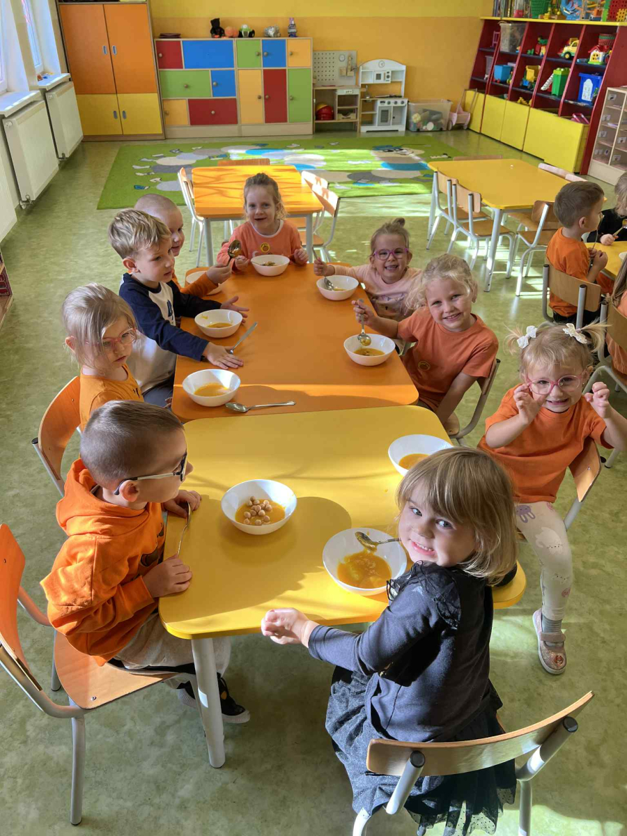 Na obiad czekała na wszystkich prawdziwa uczta — pyszny krem z dyni, który wszystkim bardzo smakował!