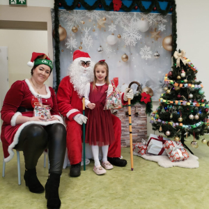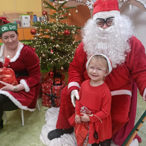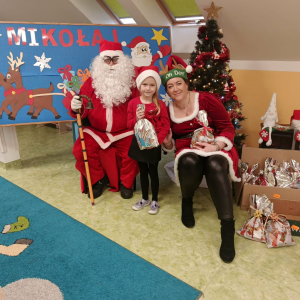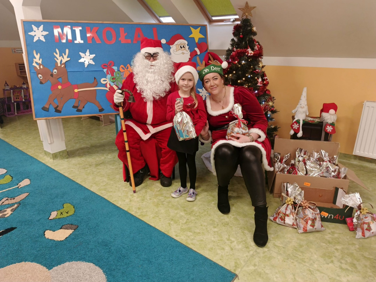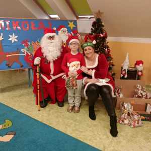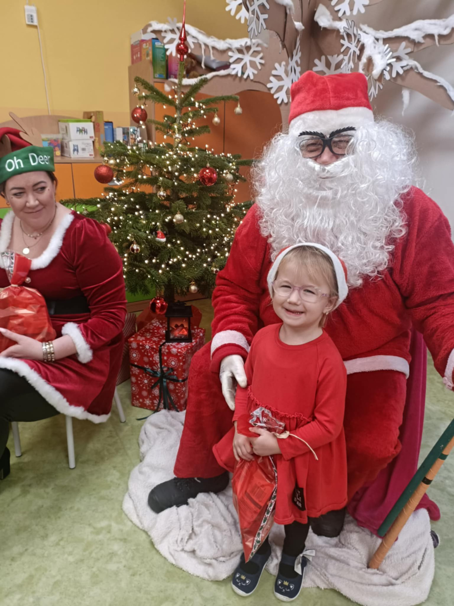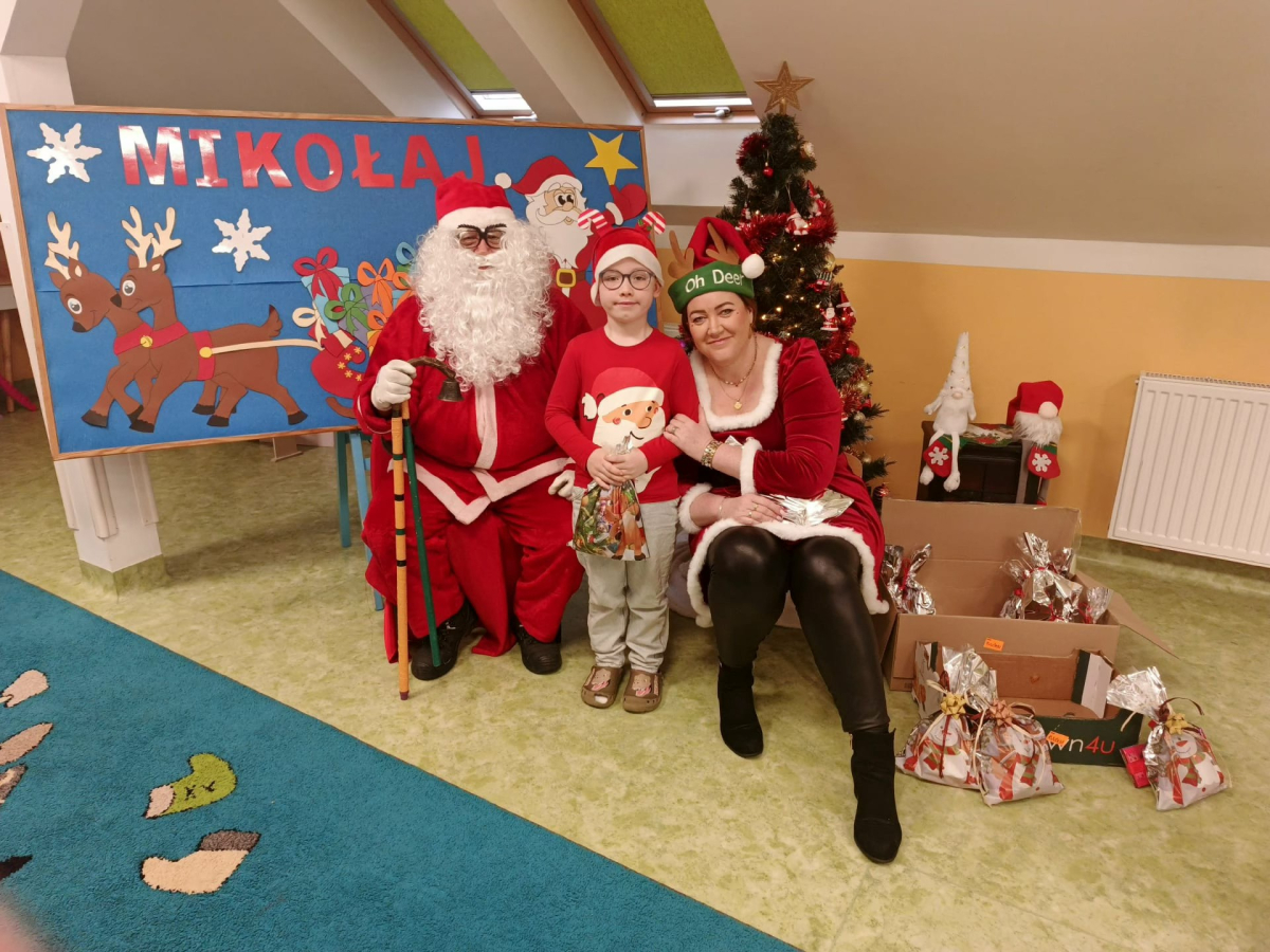 Przyleciał do nas z wielkim workiem prezentów i od razu zrobiło się wesoło. Dzieci przywitały go z ogromną radością, a Mikołaj obdarował każdego upominkiem i oczywiście głośnym „Ho, ho, ho!”.