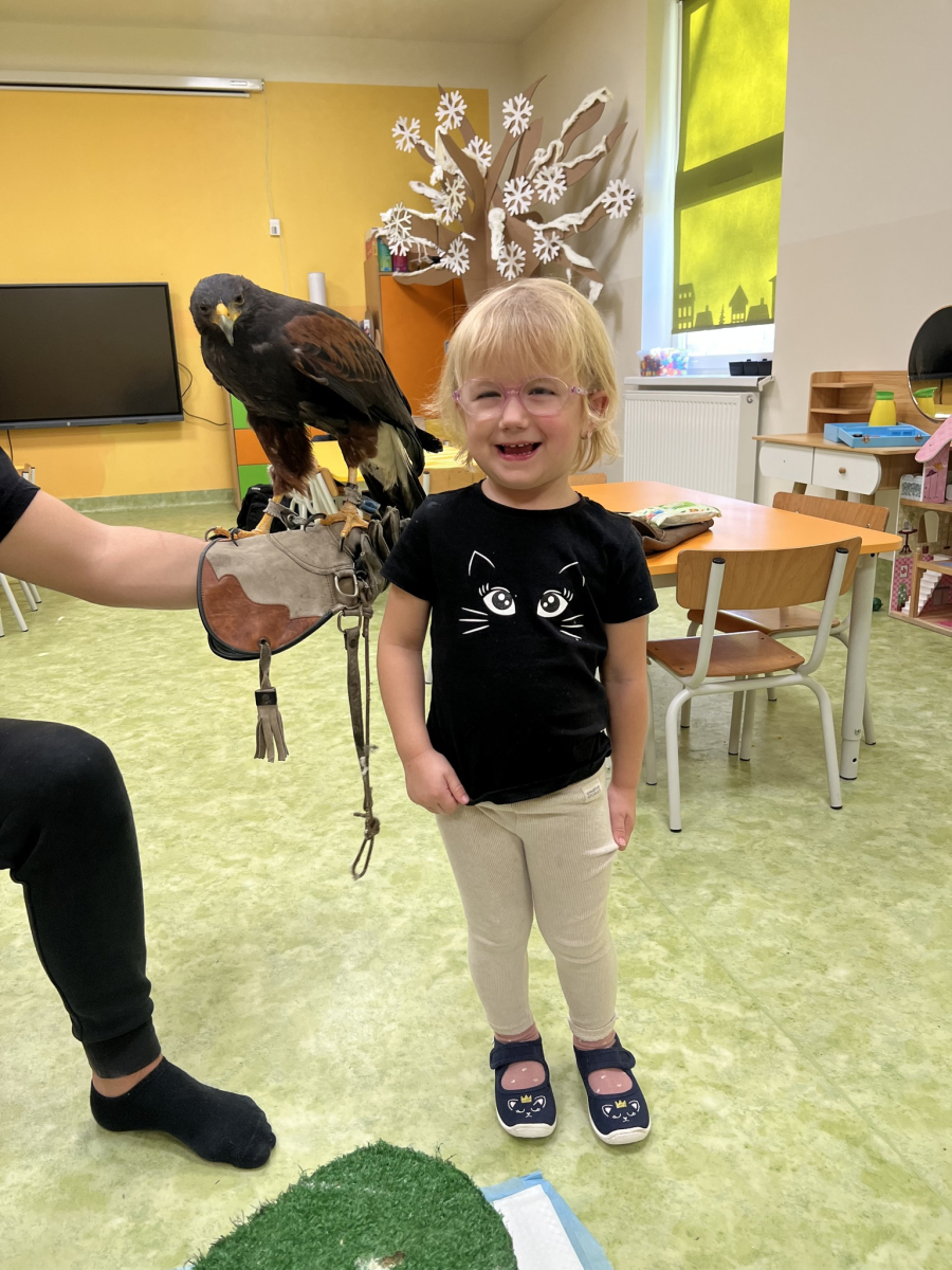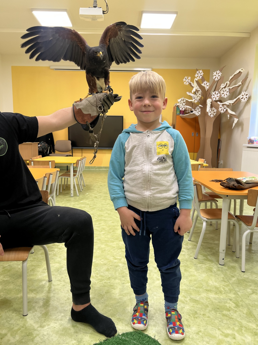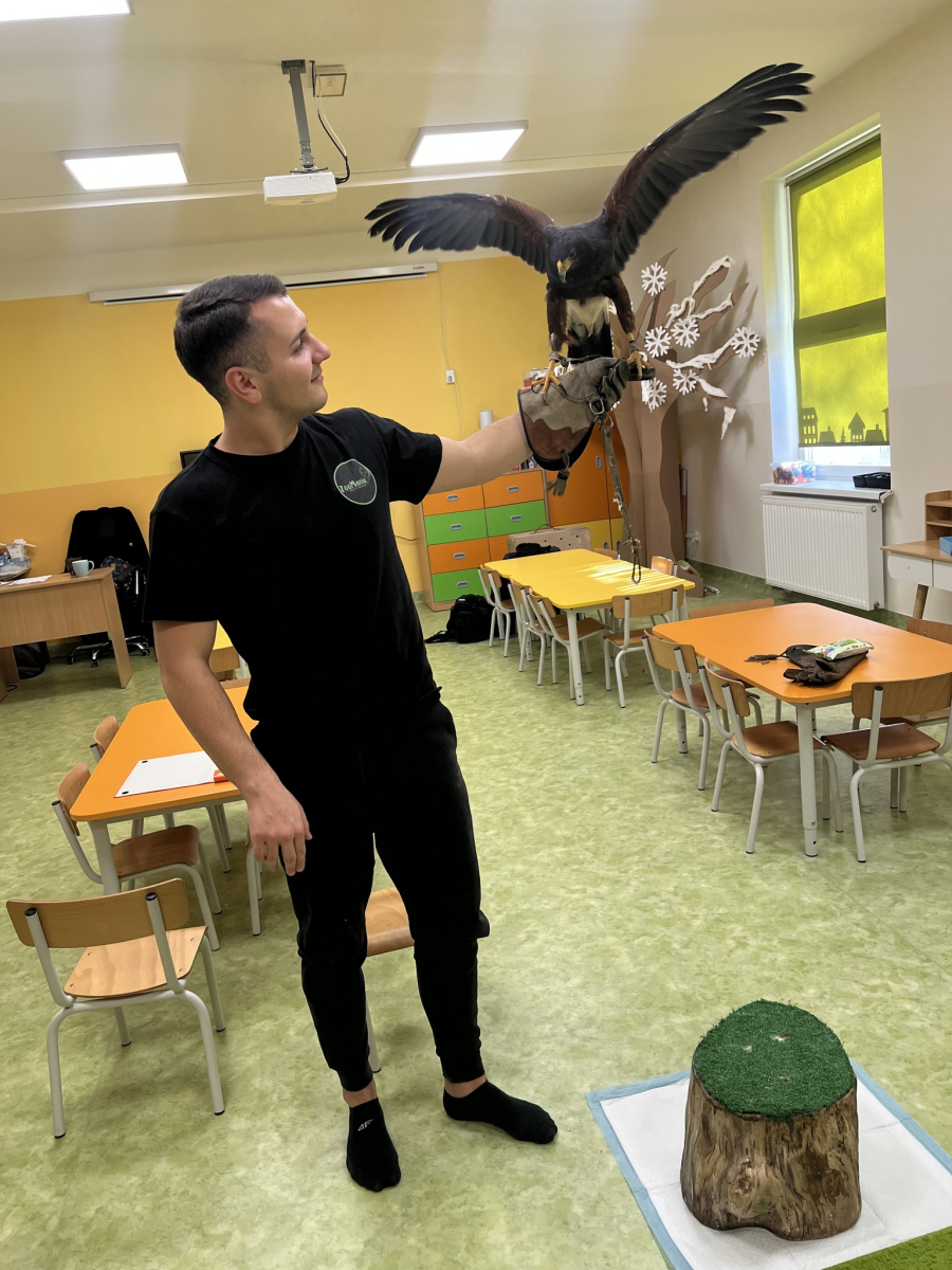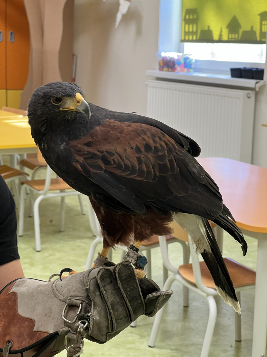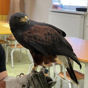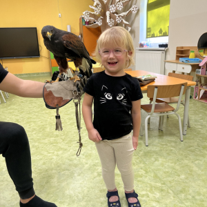 Do naszego przedszkola „przyleciał” wyjątkowy gość — jastrząb o imieniu Sara z ZooMania