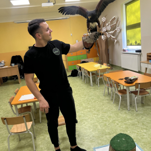 Sara okazała się bardzo spokojna, a jej opiekun opowiedział nam mnóstwo ciekawostek o życiu jastrzębi, ich zwyczajach i tym, jak ważną rolę pełnią w przyrodzie.